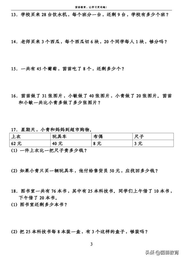 寒假练习 小学数学三年级应用题专项练习及答案 可打印 知乎