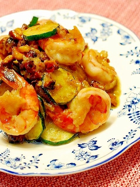 おつまみレシピ エビとズッキーニのガーリック炒め イエノミスタイル 家飲みを楽しむ人の情報サイト